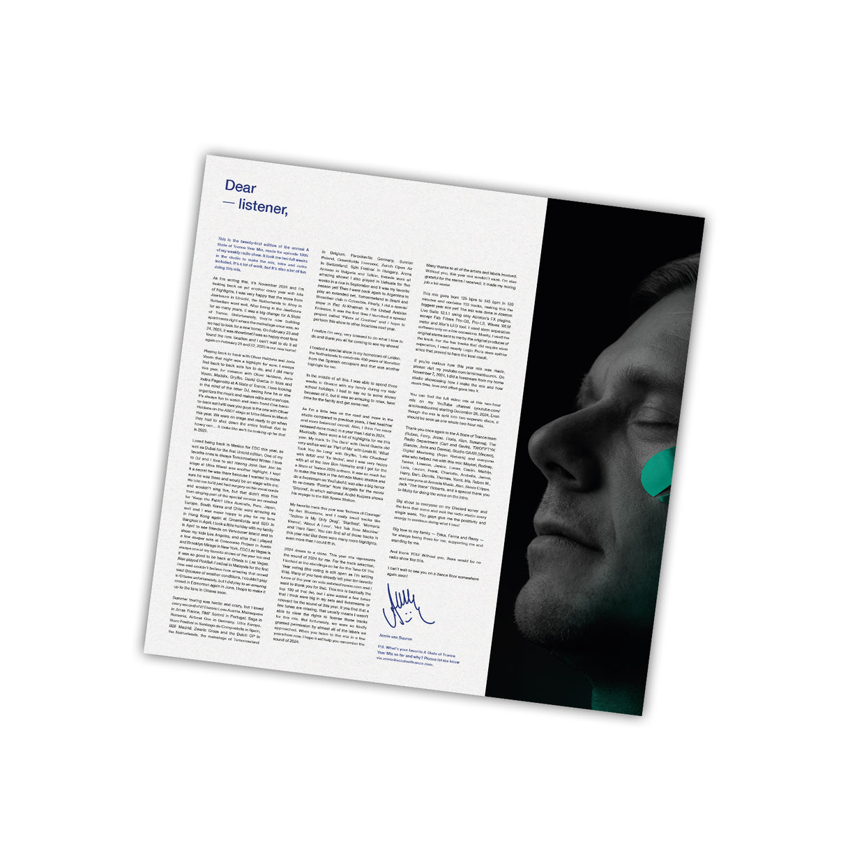 A State Of Trance Year Mix 2024 is available as a limited edition of 1500 individually numbered copies on black vinyl. The package includes an insert with liner notes by Armin van Buuren.