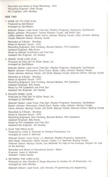 Tracklist: A1. Out Of The Blue, A2. Staying Together, A3. Only In My Dreams, A4. Foolish Beat, A5. Red Hot, B1. Wake Up To Love, B2. Shake Your Love, B3. Fallen Angel, B4. Play The Field, B5. Between The Lines