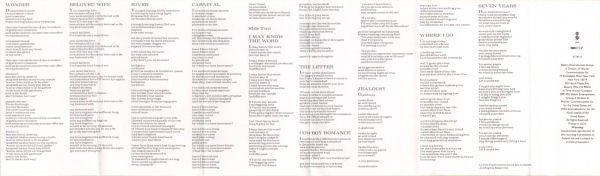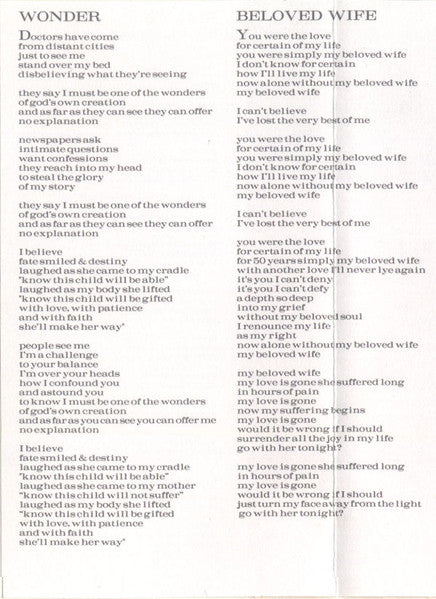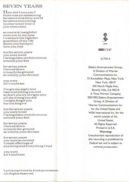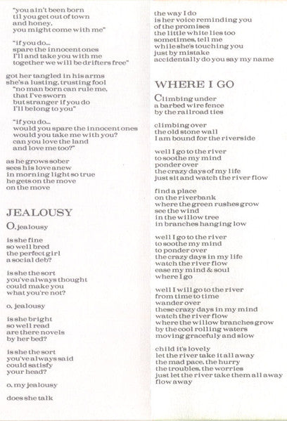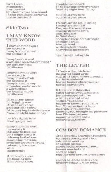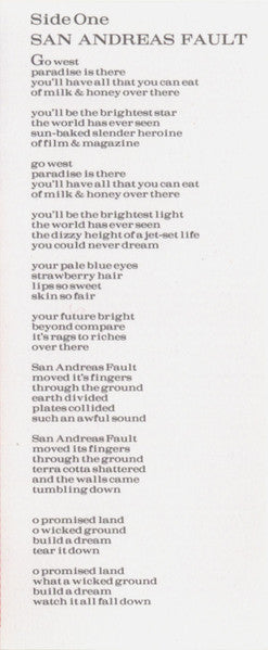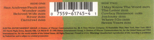 Tracklist: A1. San Andreas Fault, A2. Wonder, A3. Beloved Wife, A4. River, A5. Carnival, B1. I May Know The Word, B2. The Letter, B3. Cowboy Romance, B4. Jealousy, B5. Where I Go, B6. Seven Years