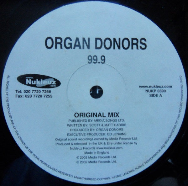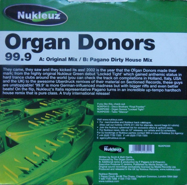 Tracklist: A. 99.9 (Original Mix), B. 99.9 (Pagano Dirty House Mix)